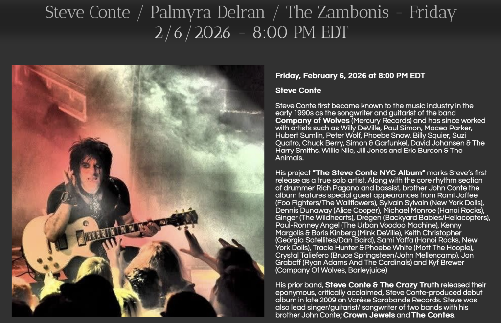 Get Tickets Here: https://www.cafenine.com/products/events/steve-conte-palmyra-delran-the-zambonis-friday-2-6-2026-8-00-pm-edt-53450593